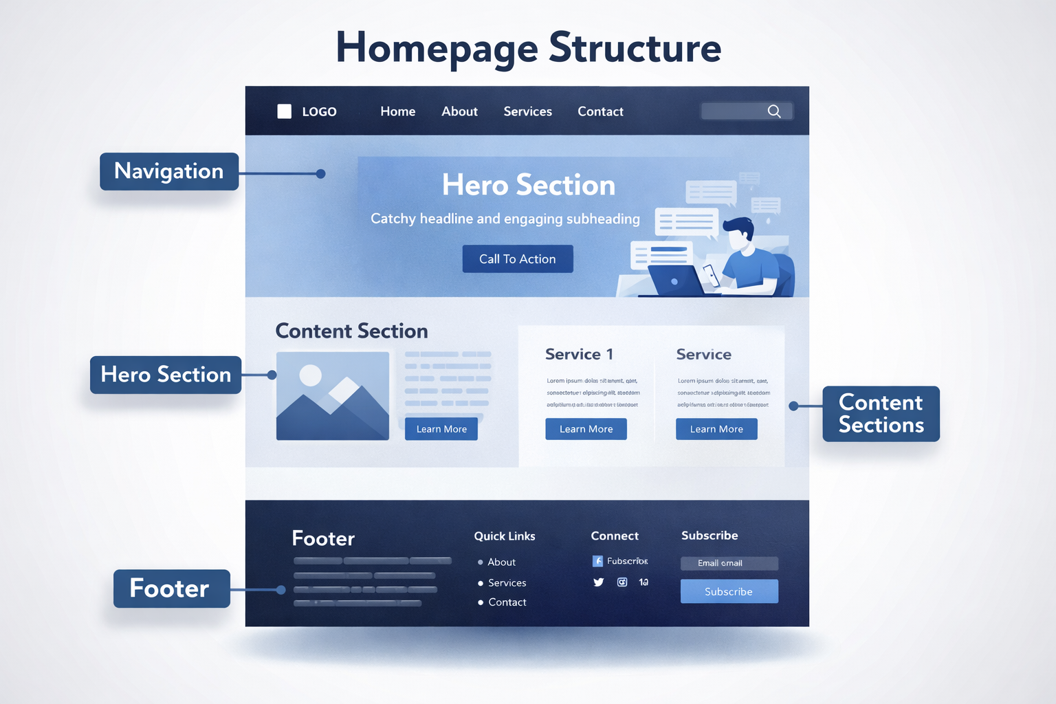 An effective homepage should communicate your message clearly without overwhelming your audience. It should highlight key information that encourages visitors to learn more about your services or products. Much like walking into a physical store, visitors often decide within moments whether they wish to stay or leave. Your homepage should feel welcoming, organized, and easy to navigate.