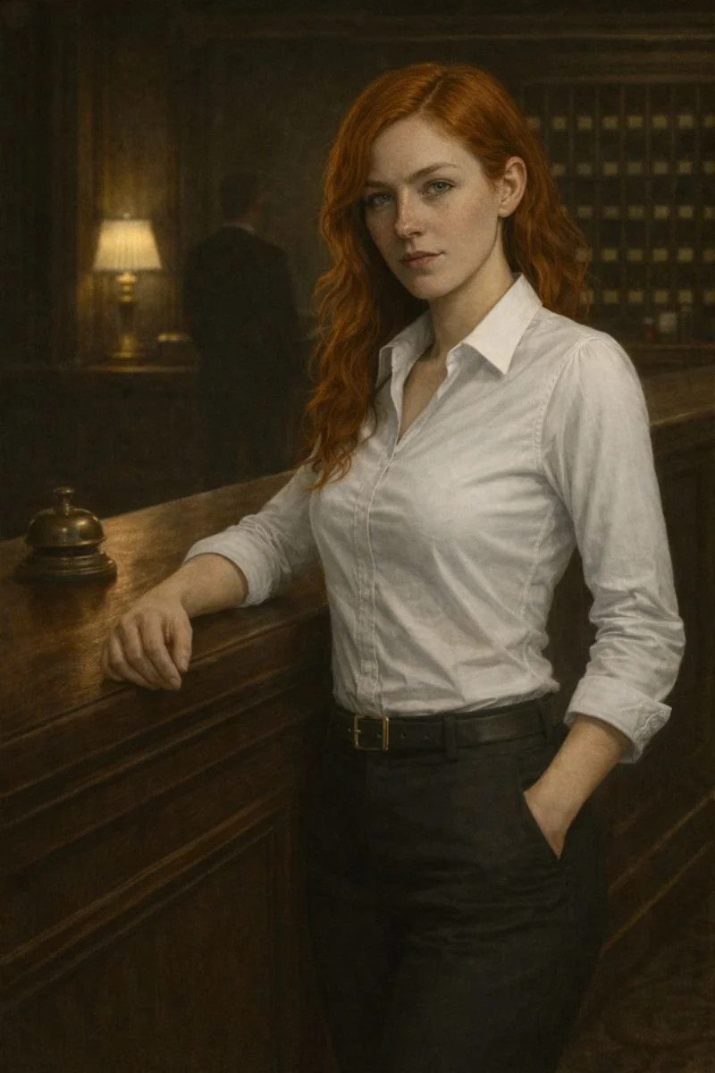 Amy began as the confident receptionist wildcard, fiery red hair, easy poise, hidden depths. She grows into a loyal ally willing to risk it all for the group. Her smile hides strength that belongs in the inner circle by the end.