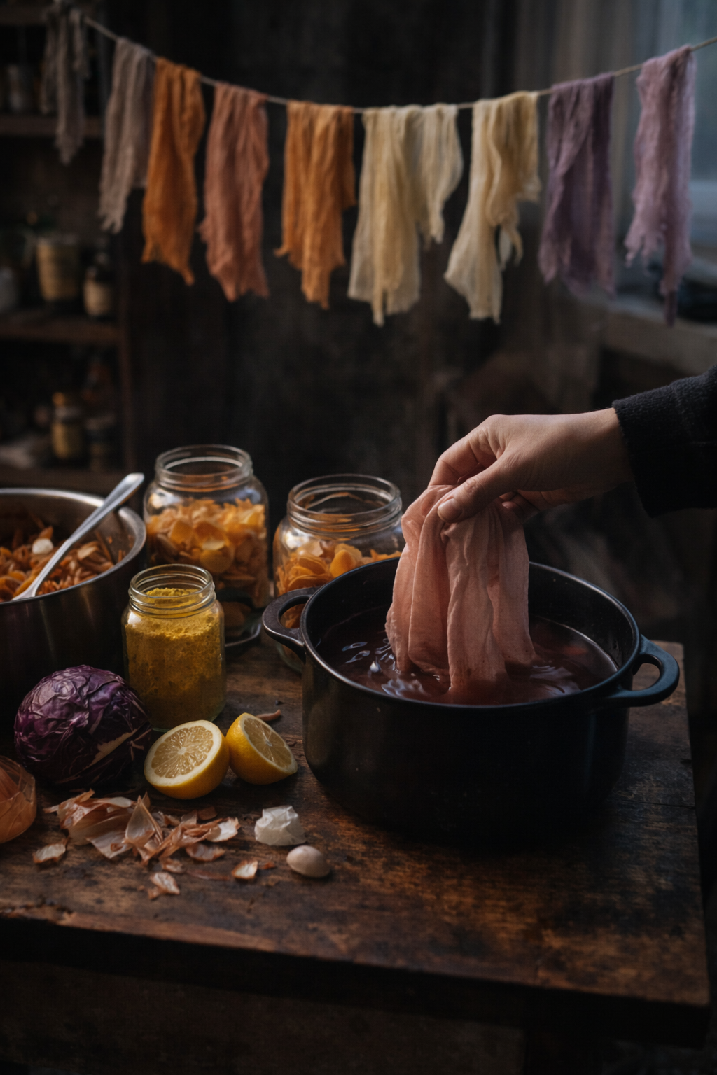 Boil the scraps in water to extract the pigments, then soak prepped fabric in the dye bath for surprising, one-of-a-kind results. It's kitchen alchemy at its best and fun, messy, experimental, and often unpredictable in the most delightful way.