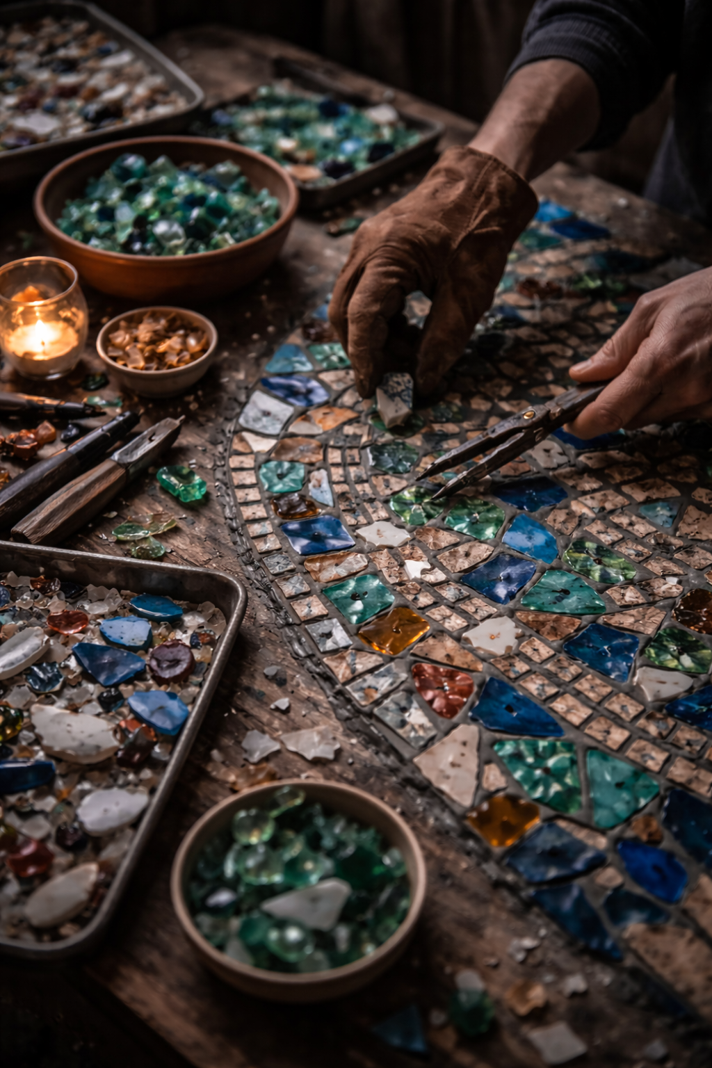 Mosaic-making is a powerful mindfulness tool, the repetitive, focused tasks (sorting shards, fitting pieces, grouting) help quiet racing thoughts, reduce stress, and induce a flow state where time slips away and worries fade.